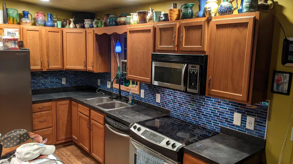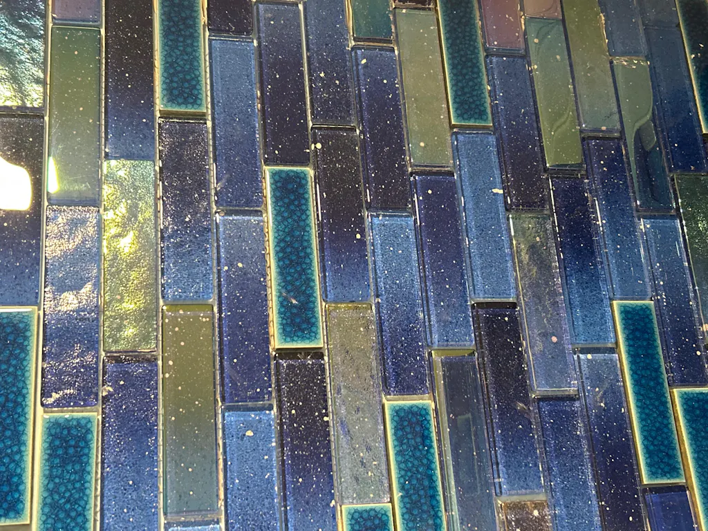 Everyone who comes in my kitchen notices this tile and loves to touch it. I didn't see the white specs in it when I ordered it but they add a coolness to the already awesome colors. It looks great in all kinds of light and reflects some ambient light so it's not too dark. It has unexpectedly become the highlight of my kitchen so I'm happy that changing just just backsplash has made my kitchen all-new again after 20 years of no changes. I'm very pleased. I purchased five boxes and had no broken tiles. My contractor said he never worked with such high-quality and nicely finished tile so it made me feel even better. I definitely made the right choice. I can see why it's Blujellyfish's best seller.